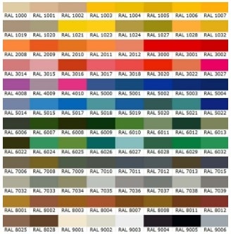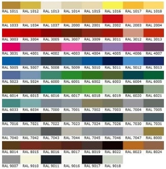 Yukarıdaki kartelada örnek renkler listelenmiştir. Ral kataloğunda bundan çok daha fazla sayıda renk bulunmaktadır. Peki ahşap desen renklerde uygulama yapılabilir mi? Evet; bir miktar fiyat farkı ödeyerek, rahatlıkla ahşap desen renklerde de uygulama talep edebilirsiniz.